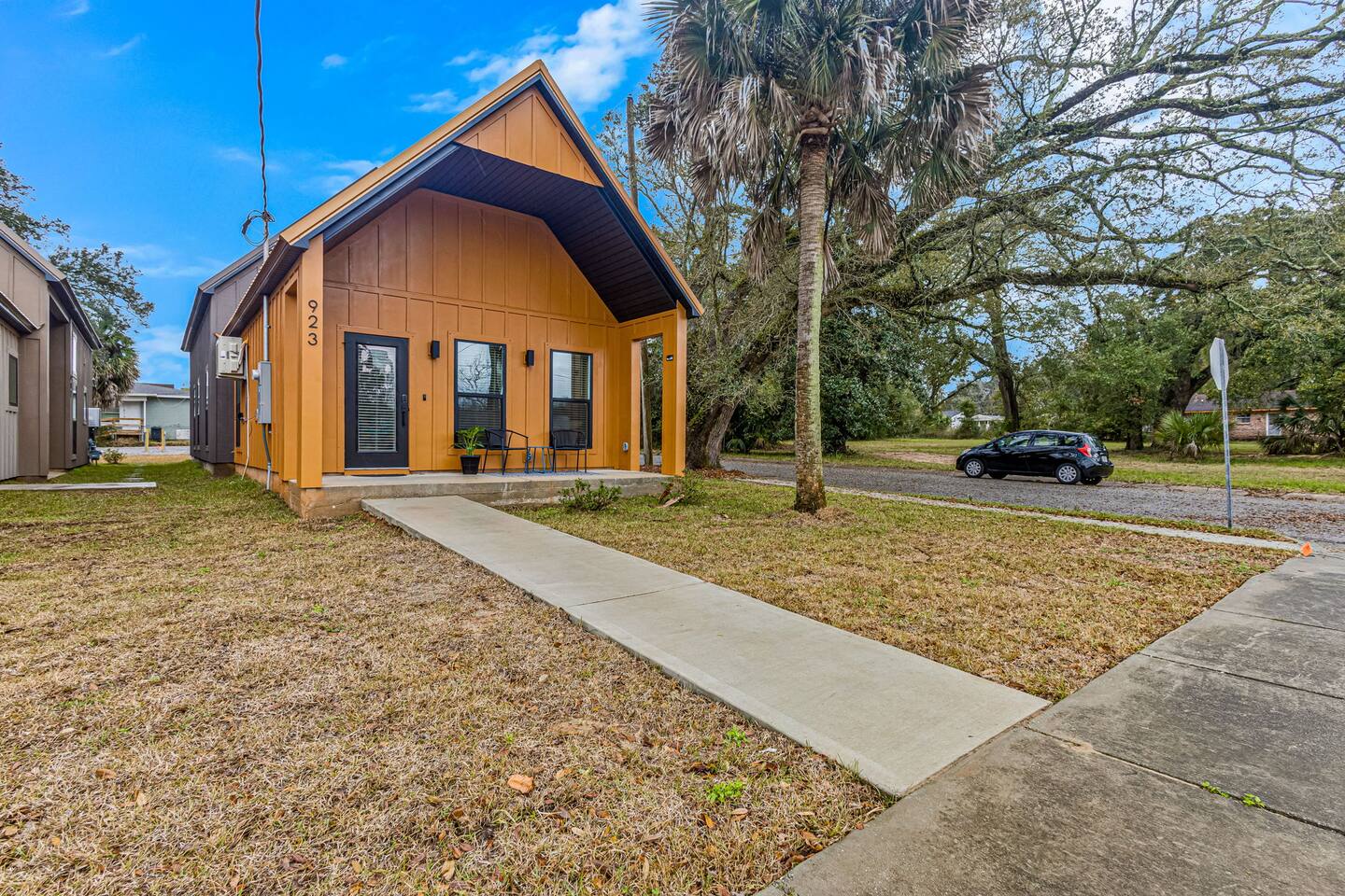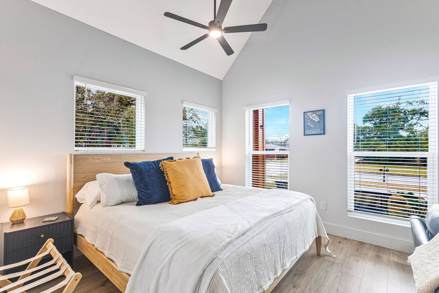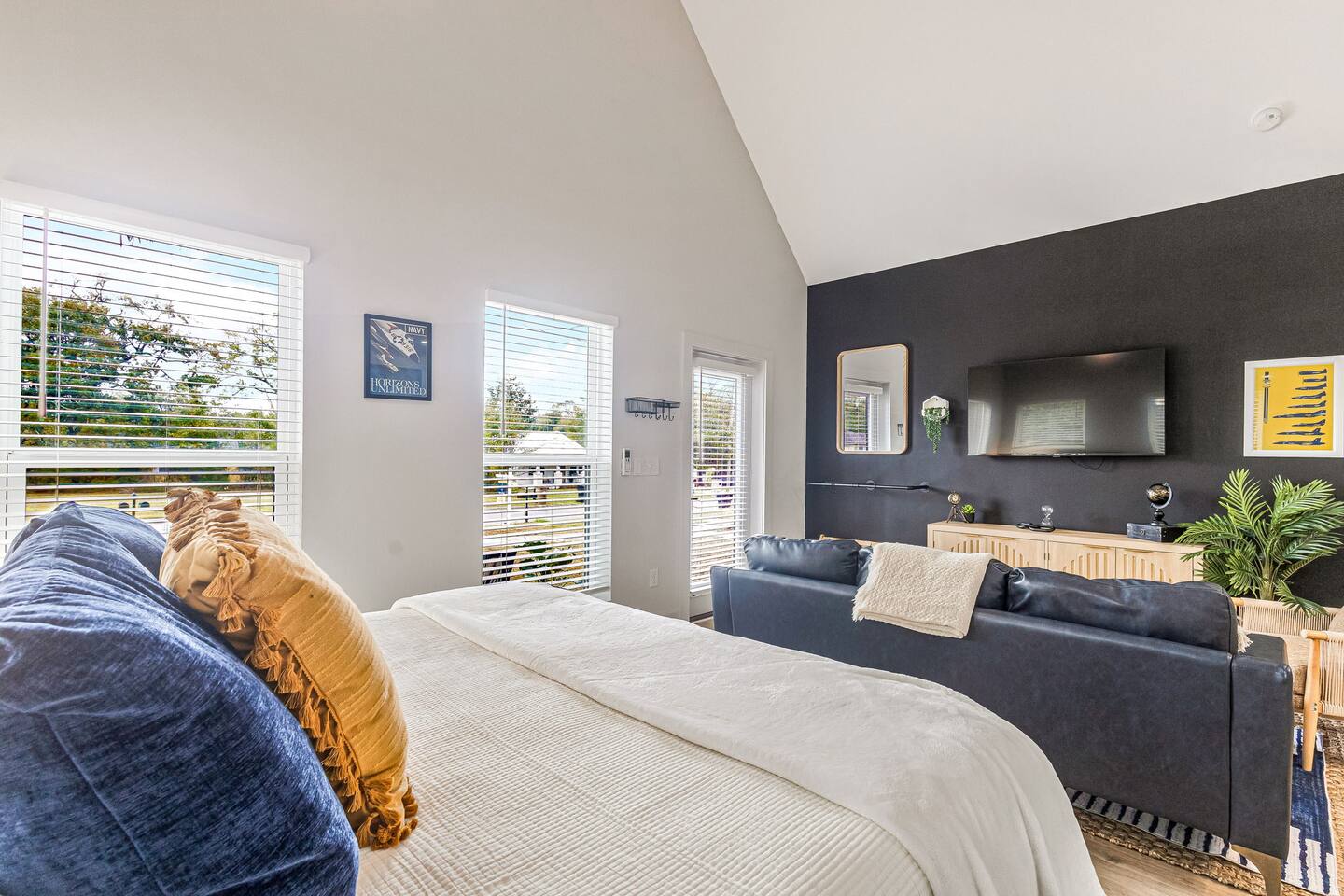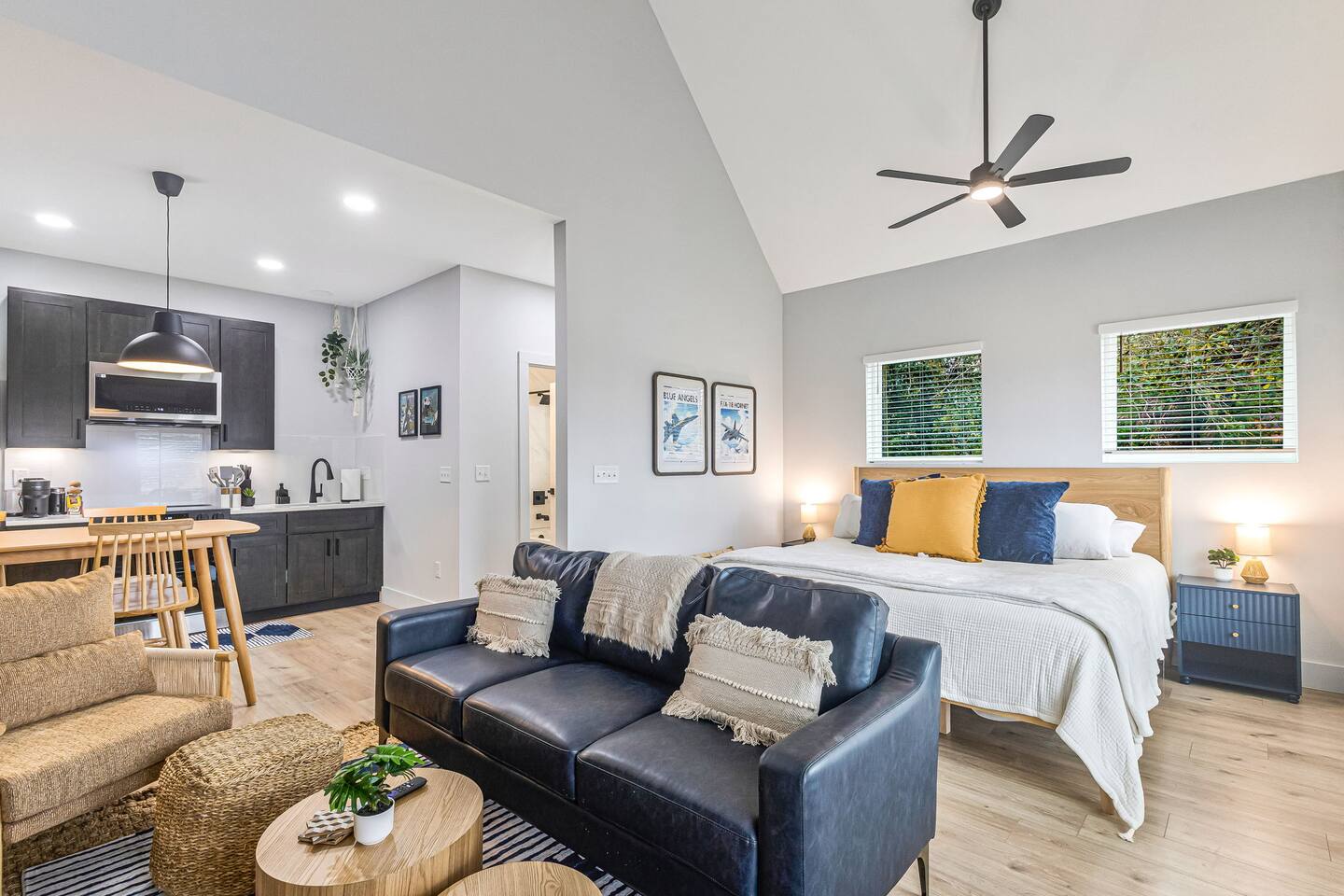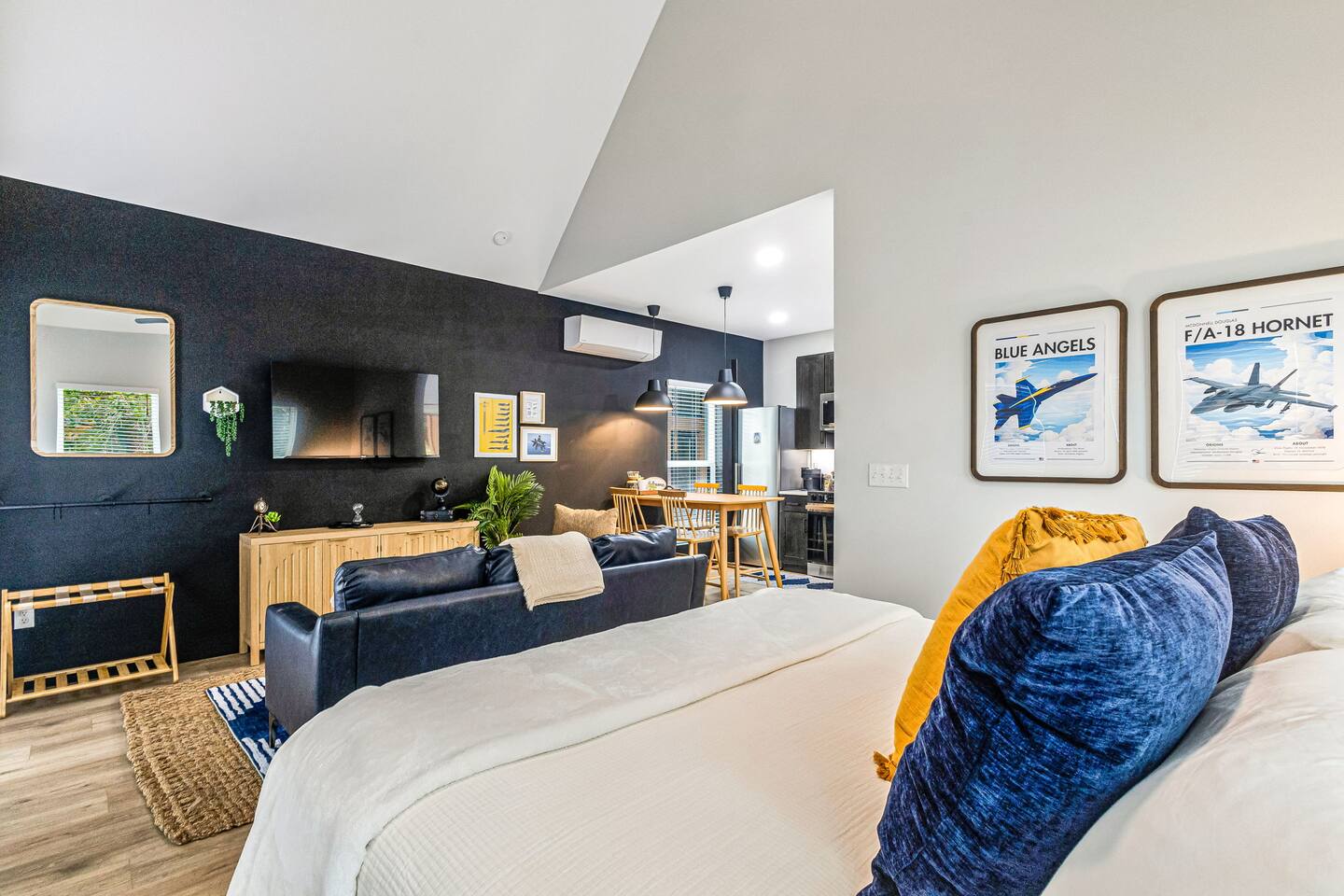 Experience the pristine luxury of this brand-new 2025 build. Never lived in and thoughtfully designed with a sophisticated Blue Angels aviation theme, this studio offers modern comfort and flawless cleanliness. Enjoy a private front porch and a fully equipped interior just 5 minutes from downtown Pensacola. Whether you are here for the beach, the base, or business, be among the first to stay in this ultra-modern retreat. High-speed Wi-Fi, premium finishes, and total rest await.